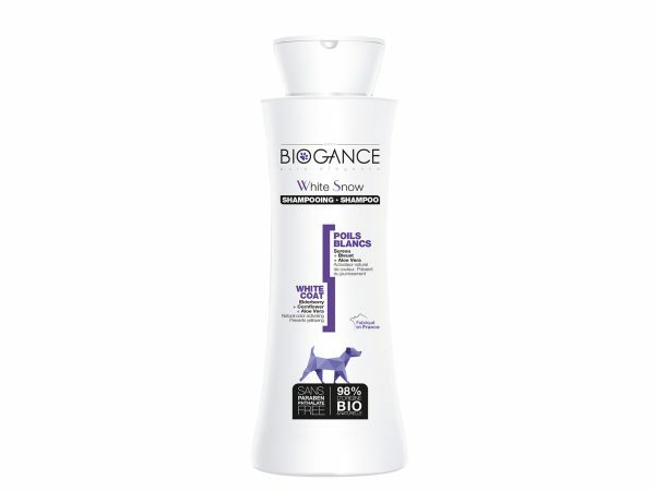 Naast deze shampoo nodigen wij u uit om onze White Spray droogshampoo te gebruiken om de witheid van de vacht te versterken.