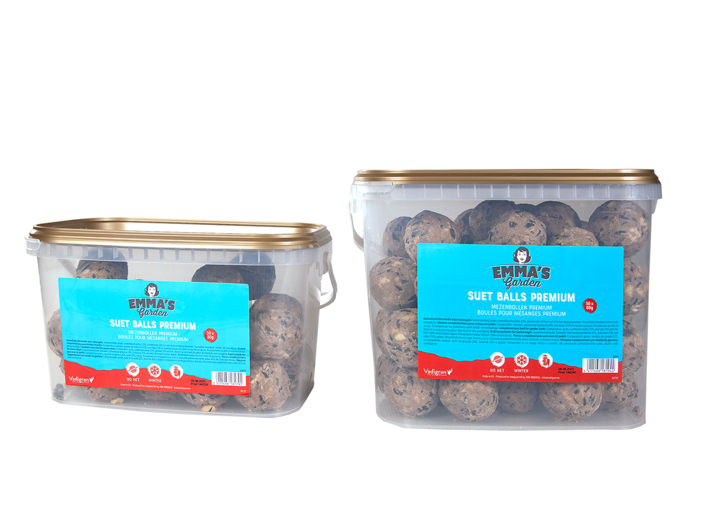 Premium vetbal met veel nootjes en zonnebloempitten. Plaats deze bollen in een vetbol houder. Vooral pimpelmees, koolmees en staartmees zijn er dol op.