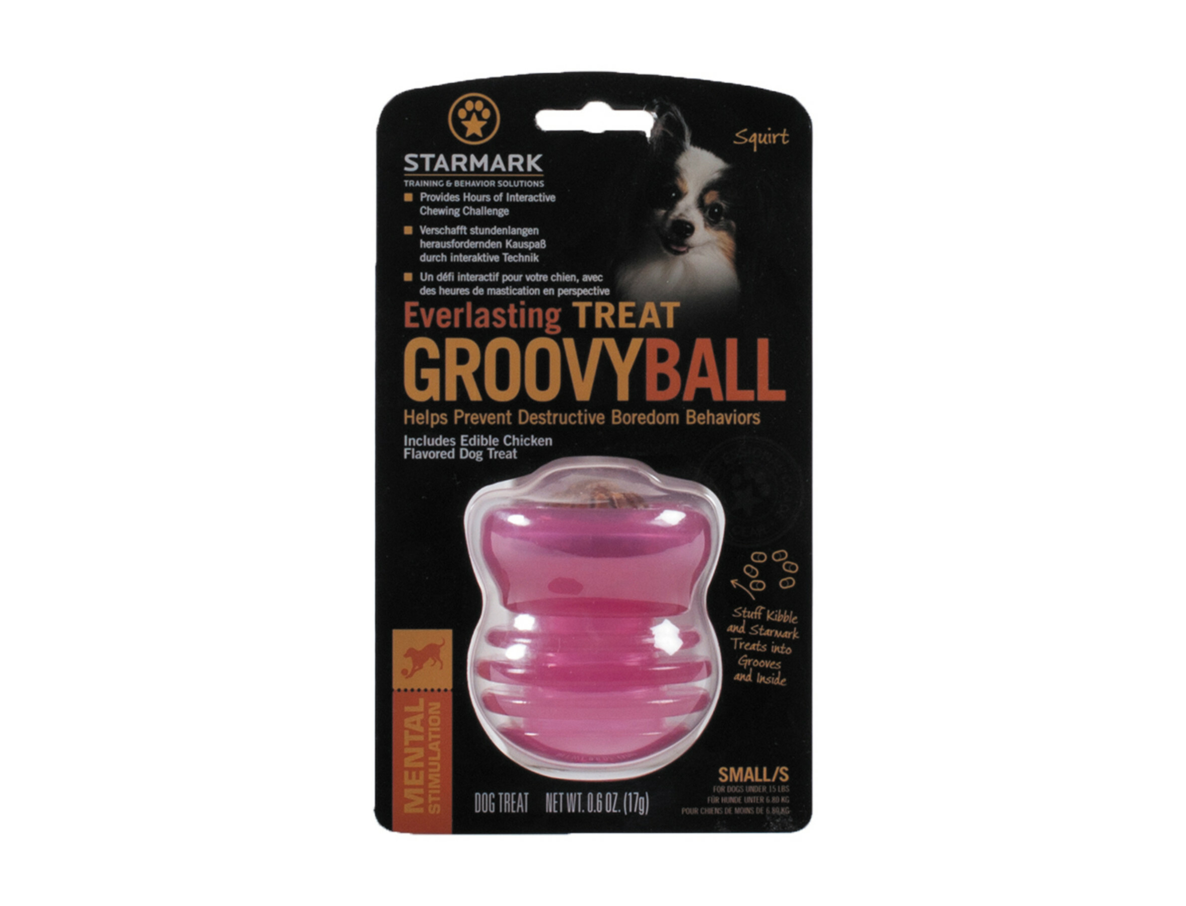 Inclusief “Everlasting Treat Original S” (1887) met kipsmaak. Voor nog meer plezier kun je de Starmark Interactive treats 156g (13000) erin doen.