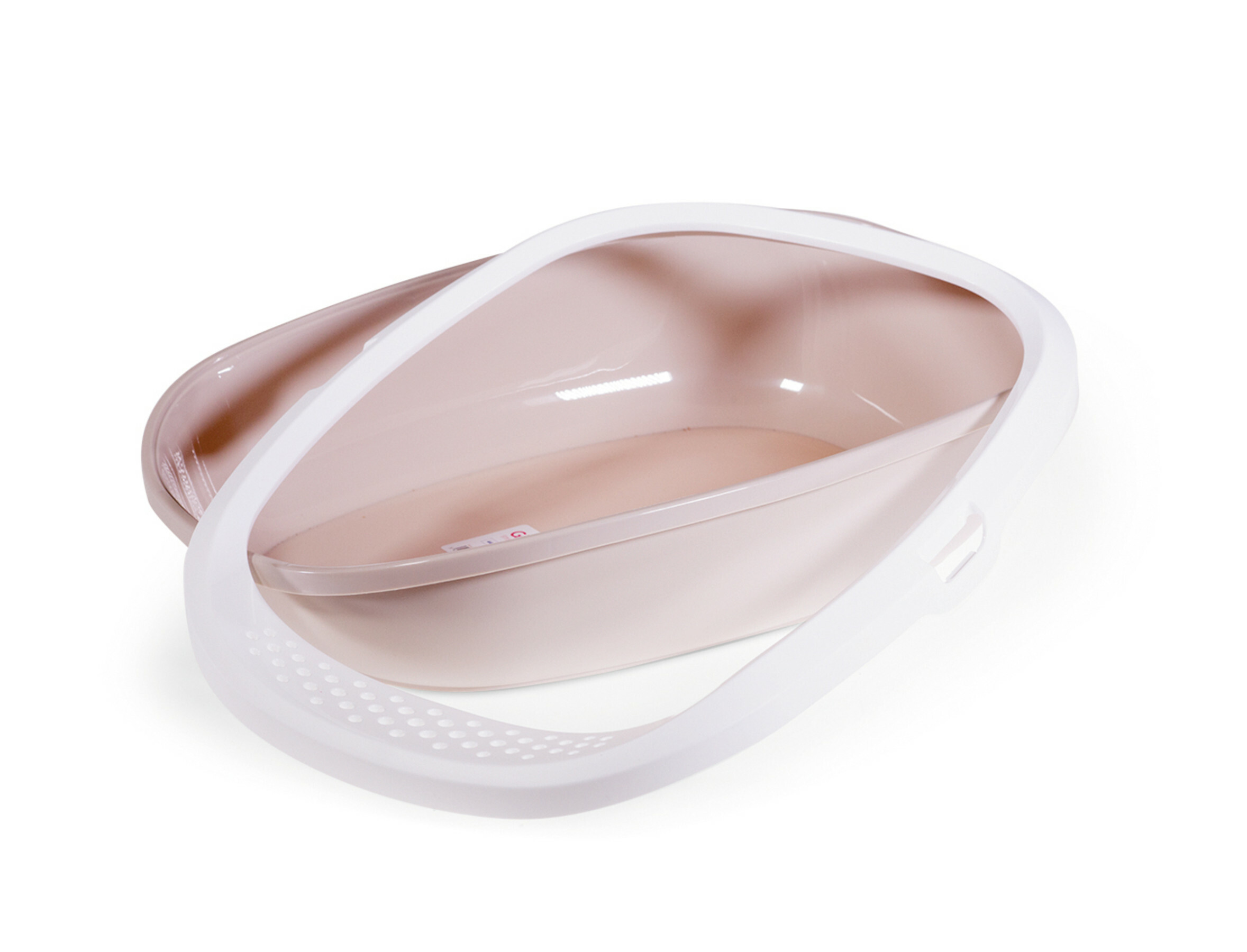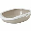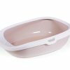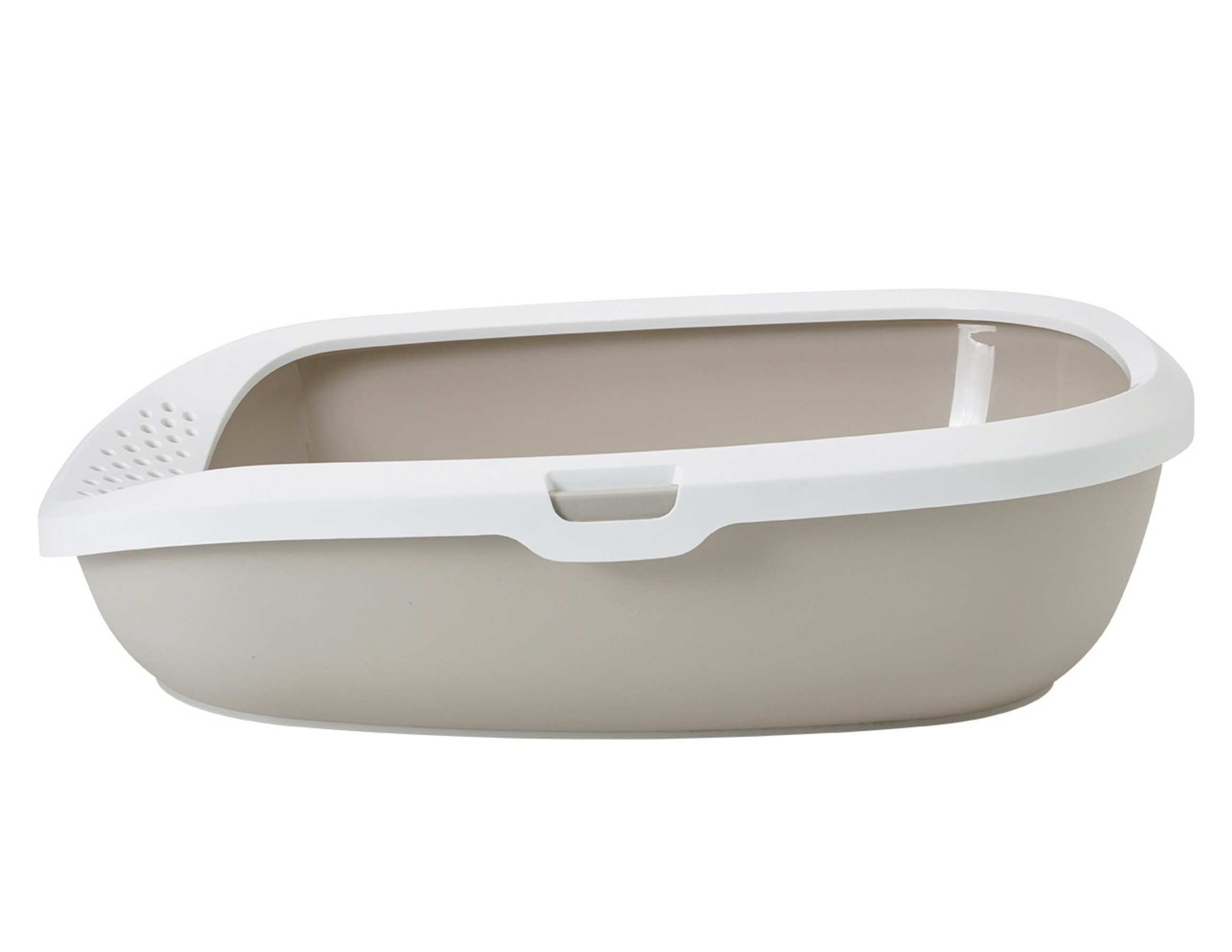 Deze kattenbak heeft het bijzondere karakter dat hij een afneembare rand heeft, voorzien van een rooster, zodat de kattenbakvulling zich niet verspreidt wanneer de kat de bak verlaat.