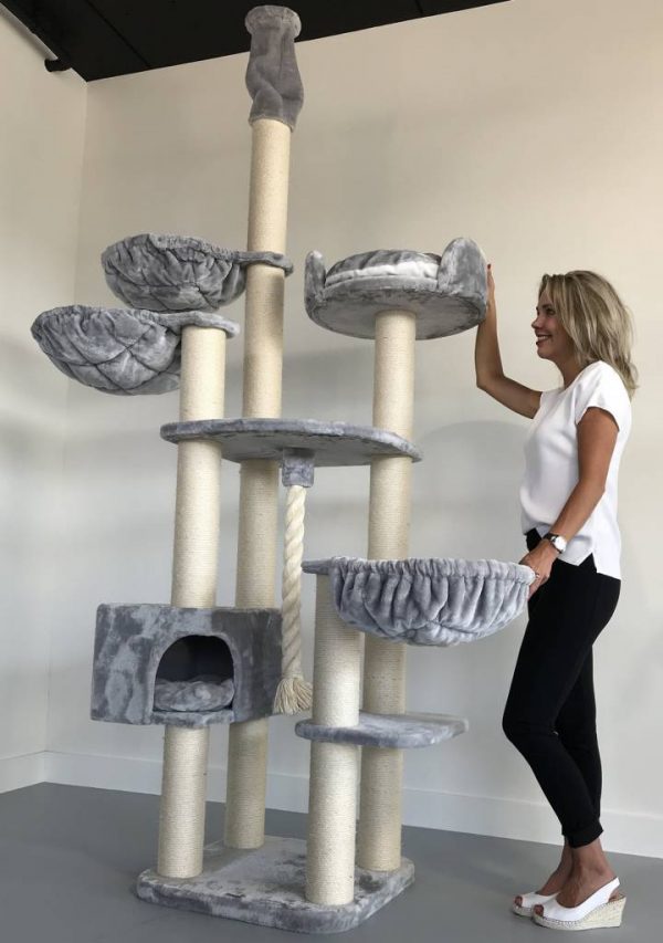 Krabpaal Catdream de Luxe Light Grey met 54KG is een van de stevigste krabpalen in de markt, door de meest stabiele opbouw met 4 cm dikke bodemplaat en 4 dikke 12cm sisalpalen die naar boven gaan.