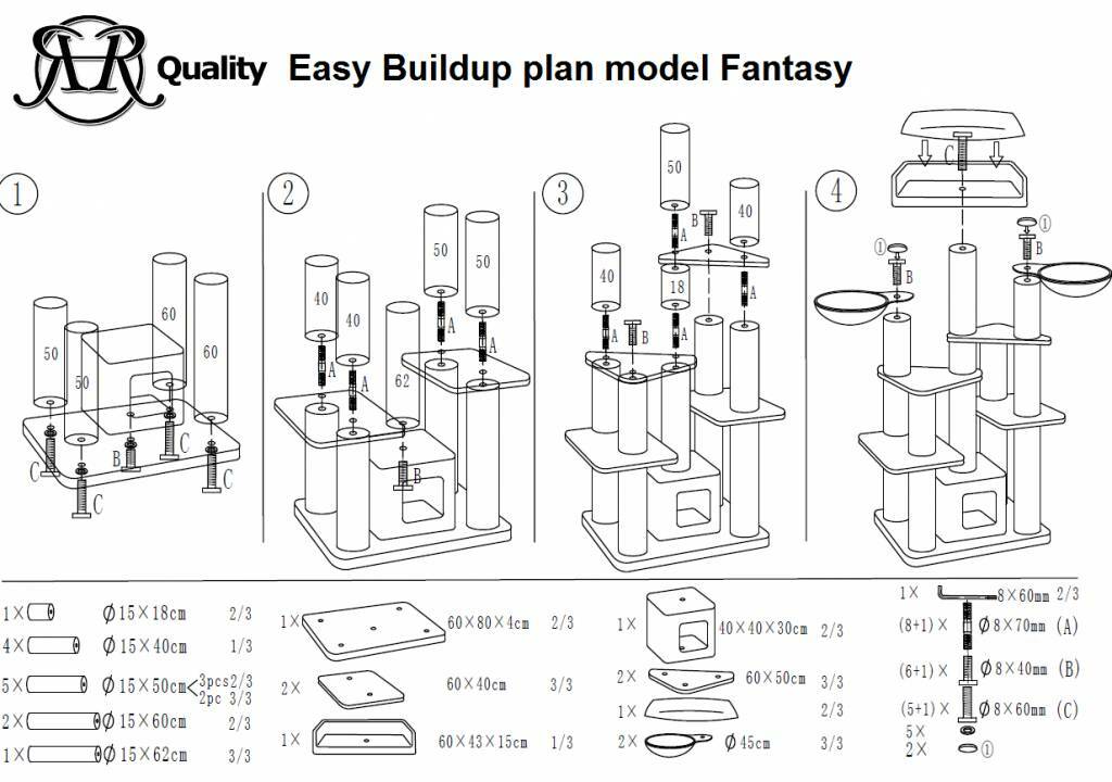 Om hem te plaatsten heeft u 120×60 cm nodig en de bodemplaat is 80x60x4cm en extra zwaar. Uw katten hebben hier overal veel krab mogelijkheden en kunnen eenvoudig naar boven en beneden.