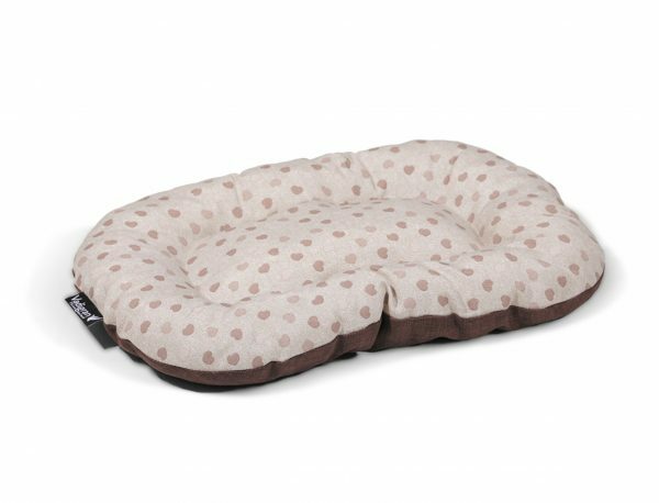 Het Valentina kussen is een mooi ovaal hondenbed, versierd met hartjes aan de bovenkant. De klassieke kleuren passen perfect in elk interieur.