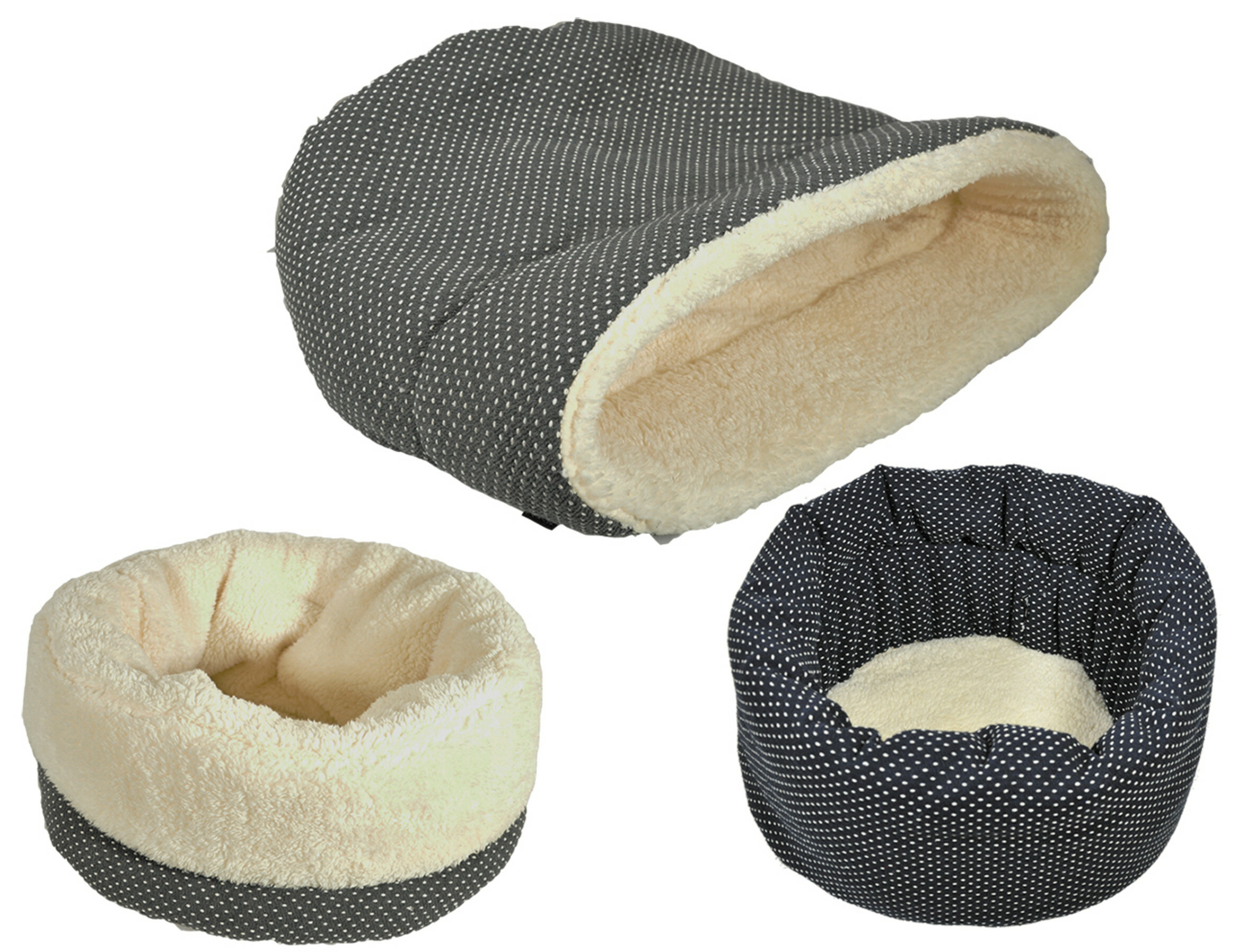 2 in 1: slaapzak waar uw huisdier zich in kan verbergen en in kan slapen of mand met een stevige rand die veel steun geeft.De binnenkant is bekleed met zeer zachte pluche.