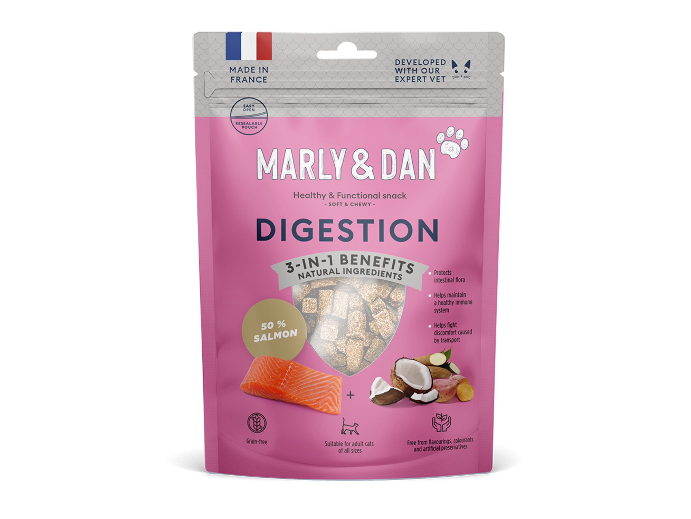 Deze natuurlijke snack helpt je dier een goede spijsverteringsbalans te behouden door natuurlijke ingrediënten zoals gember, kokos en zoete aardappel te combineren. Deze vezelrijke snack helpt de darmen van je huisdier goed te functioneren