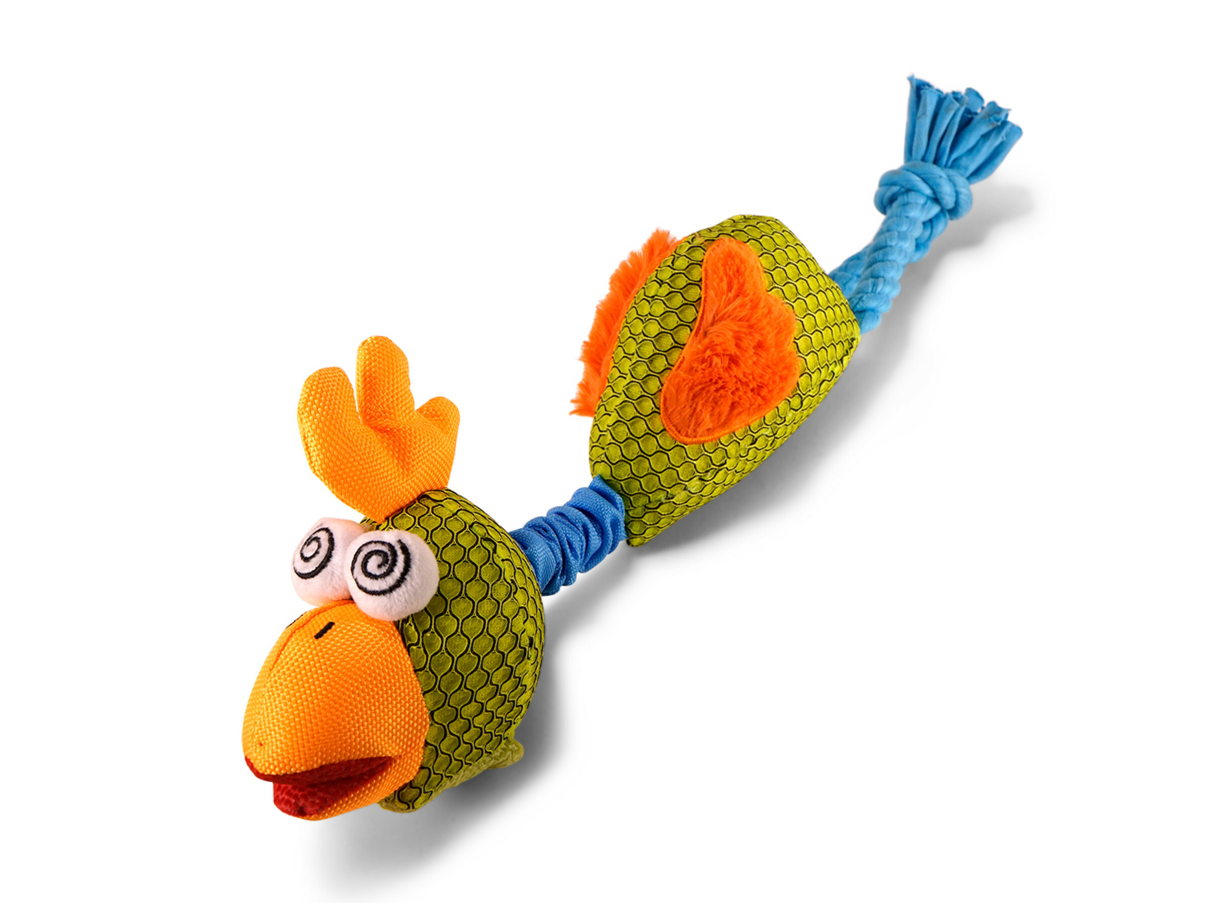 Met een geknoopt touw die beantwoordt aan de natuurlijke instincten van de hond en het pluche lijfje biedt extra knuffelgehalte.