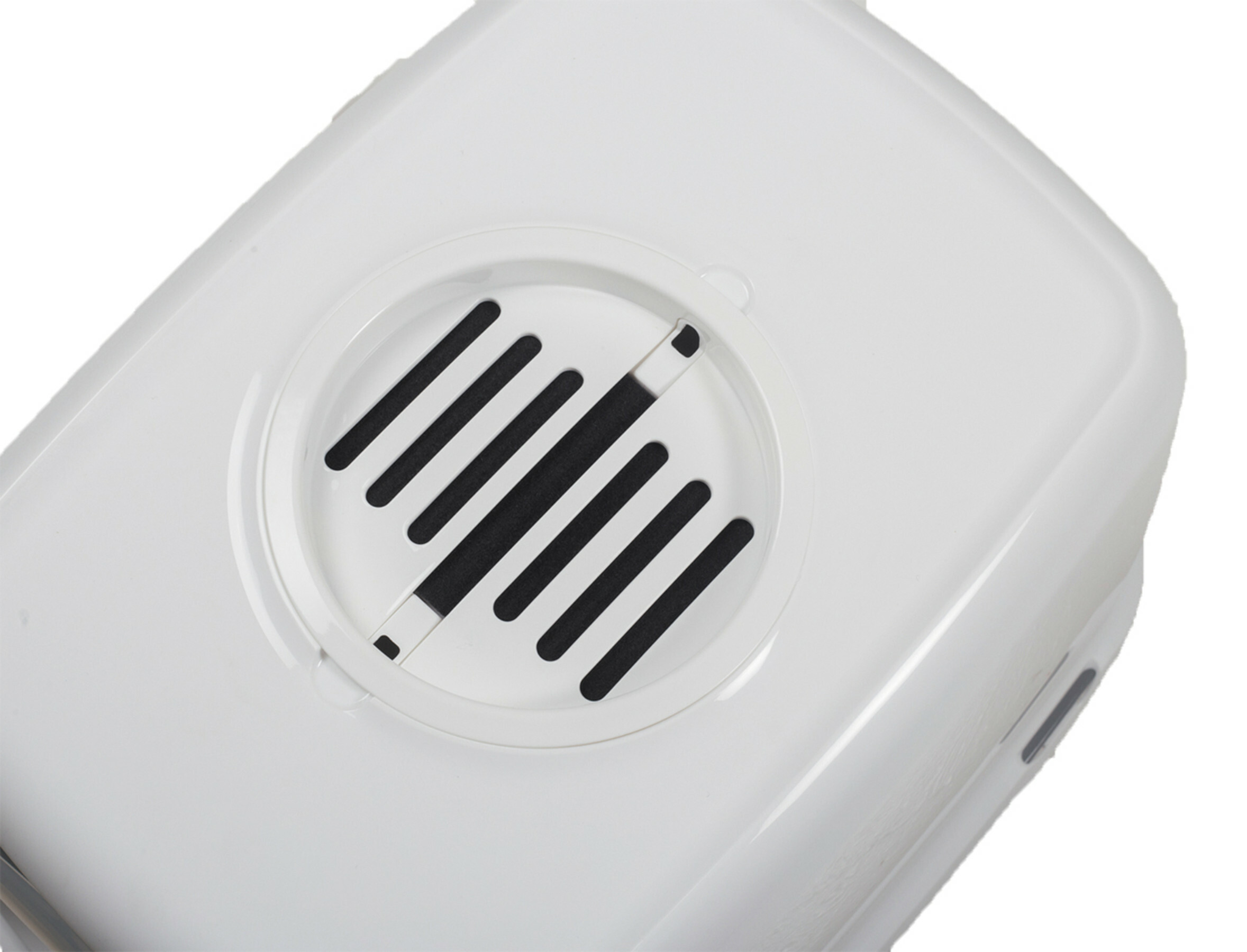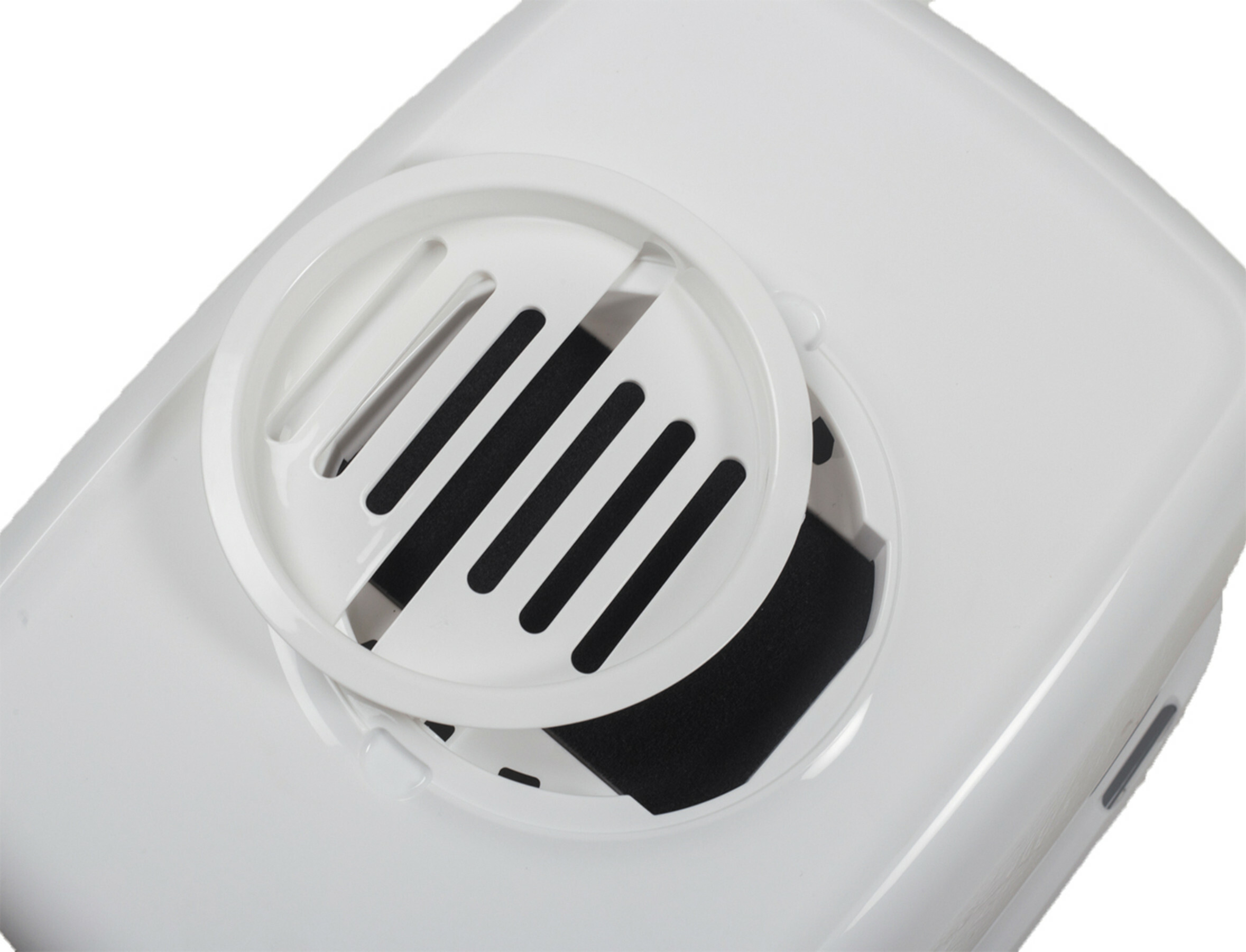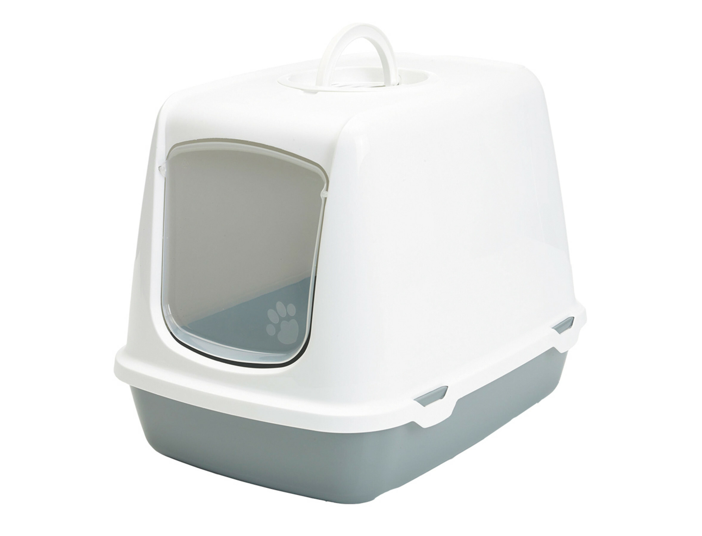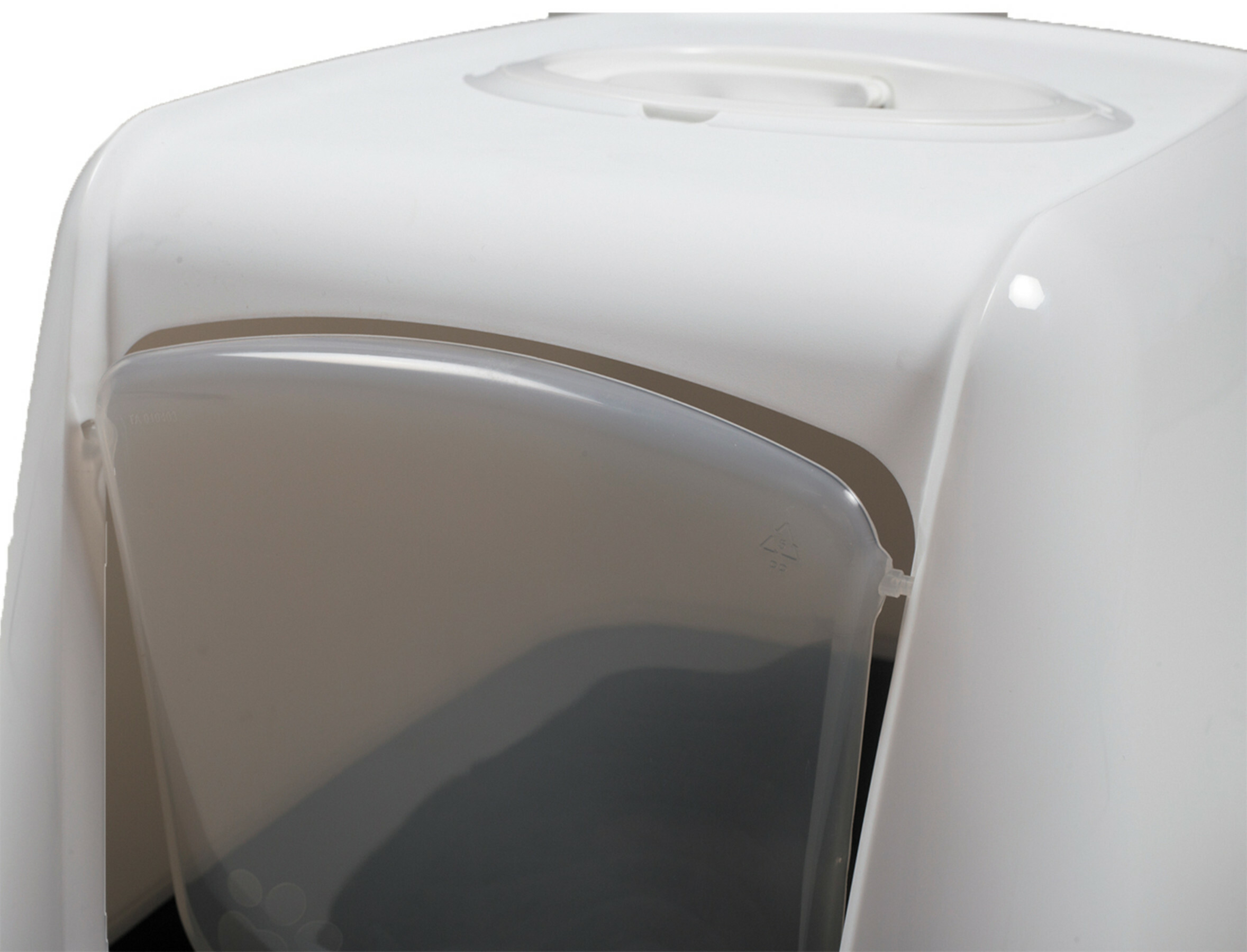 Het is voorzien van een draaideurtje, wat het licht binnenlaat en de kat zijn privacy gunt.