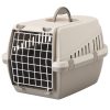 De Trotter 1 transportbox heeft een voordeur van gecoat metaaldraad. Het handvat zorgt ervoor dat je je huisdier gemakkelijk bij je kunt dragen en wordt aanbevolen voor vervoer per auto, boot, trein of vliegtuig. Er zijn voldoende ventilatiesleuven om luchtcirculatie te garanderen voor maximaal comfort. De Trotter 1 transportdrager voldoet aan de IATA-normen.